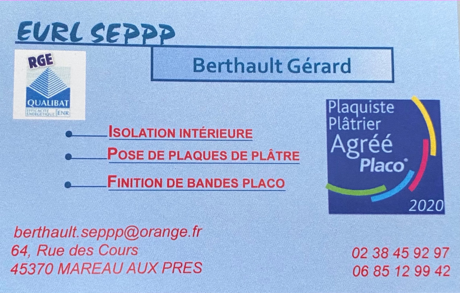Entreprise de plaquiste, bandes et isolation, EURL SEPPP dispose de qualification Qualibat RGE. L'entreprise réalise la pose de plaque de plâtre, de cloisons, de doublages, d'isolation ainsi que la finition bandes.